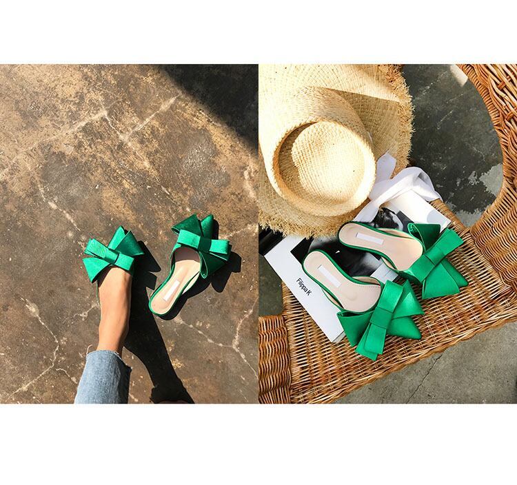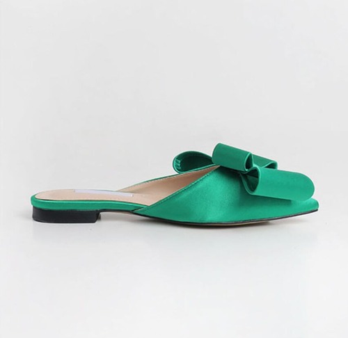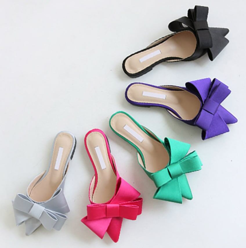 【送料無料】 シューズ サンダル ミュール l ぺたんこ ヒールレス ポインテッドトゥ リボン かわいい 大人可愛い きれいめ カジュアル おしゃれ お洒落 無地 春 夏 秋 10代 20代 30代 レディース デート お出かけ ファッション サイズ 22.5cm 23.5cm 24.5cm 25.5cm 色展開 ブラック グリーン パープル グレー
