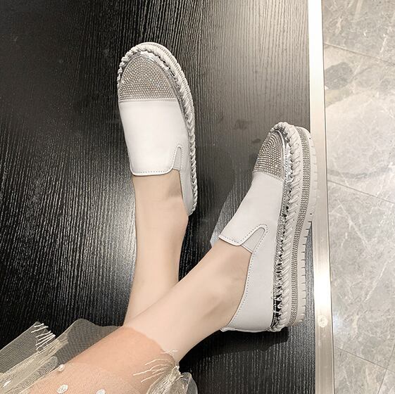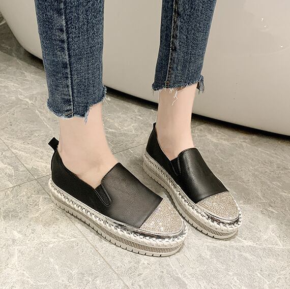【スリッポン レディースシューズ フラットシューズ 厚底 ラウンドトゥ ビジュー PU】今季一番の大人可愛いスリッポンシューズ!洗練された上品なシンプルなデザインで、大人っぽくもキュートでも活躍してくれる、主役級の存在感を放ちます。柔ら