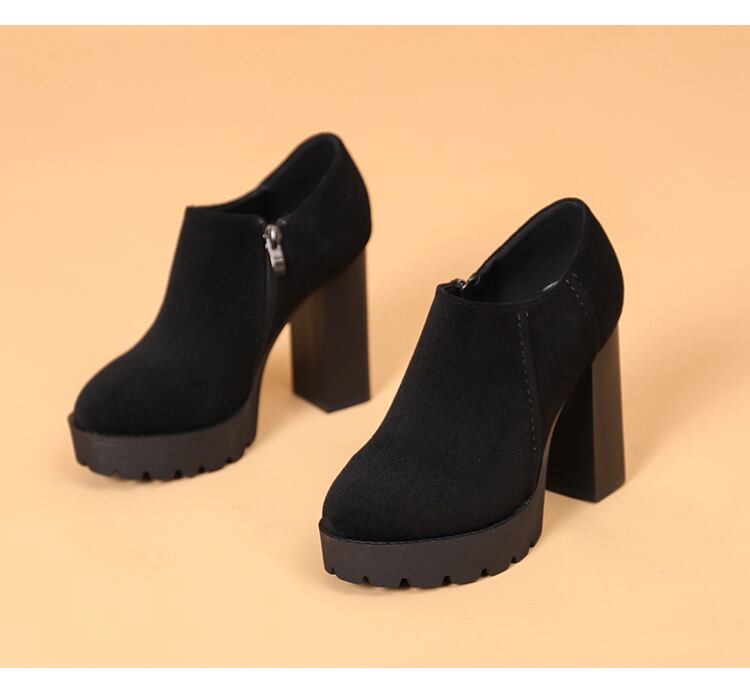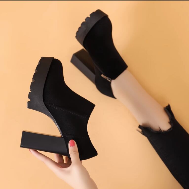 レディースブーツの上品で個性的な存在感!10cmの太ヒールが大人可愛い、大人なカジュアルスタイルを演出します。20代から30代のレディースにおすすめな、かわいいショートブーツでデートやお出かけなど、様々なコーディネートを楽しめます。シンプルな無