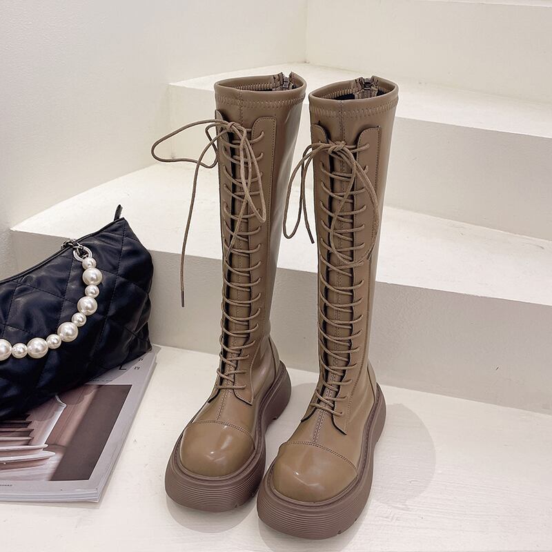- 25.0cmレースアップで可愛く大人可愛い!ロングブーツ レディースシューズが登場!5cmヒールで厚底で歩きやすいのに、かわいいデザインで大人可愛いスタイルを叶えてくれます。スタイルを問わずに、シンプルからカジュアル、上品からお洒落、レ