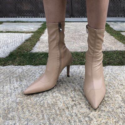 美脚を叶える!6.5cm&8.5cm ヒール ポインテッドトゥ レザー ショートブーツ シューズ 靴 くつ クツ ブーツ ハイヒール ピンヒール。歩きやすさと可愛らしさを兼ね備えた、大人可愛いデザインのシンプルなショートブーツ。カジュアルから上品まで、