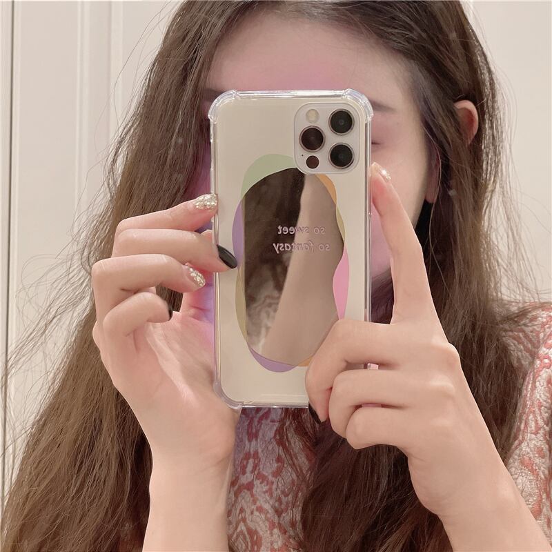 【送料無料】 ミラー iPhoneケース ストラップ付 l 鏡 シンプル きれいめ 大人可愛い スマホケース 韓国っぽ