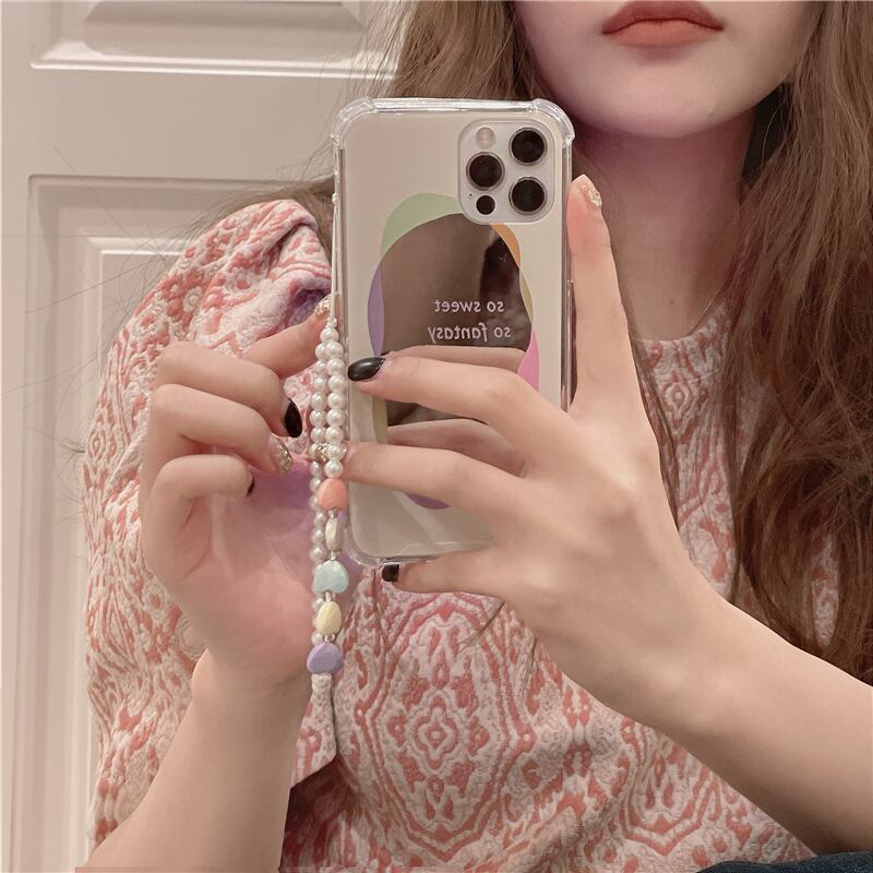ミラー iPhoneケース ストラップ付 パール 鏡なら、大人可愛いスマホケースを求めるなら、これがおすすめ!韓国っぽいシンプルできれいめなデザインなので、毎日使うスマホを洗練させてくれます!パールとミラーが組み合わさった、夢見心地な大