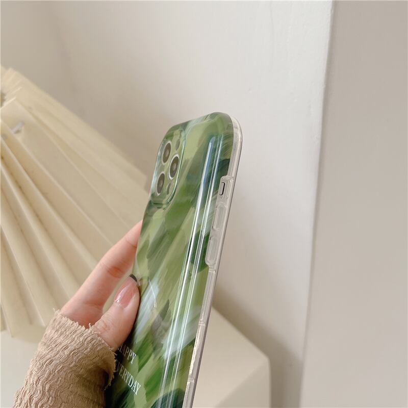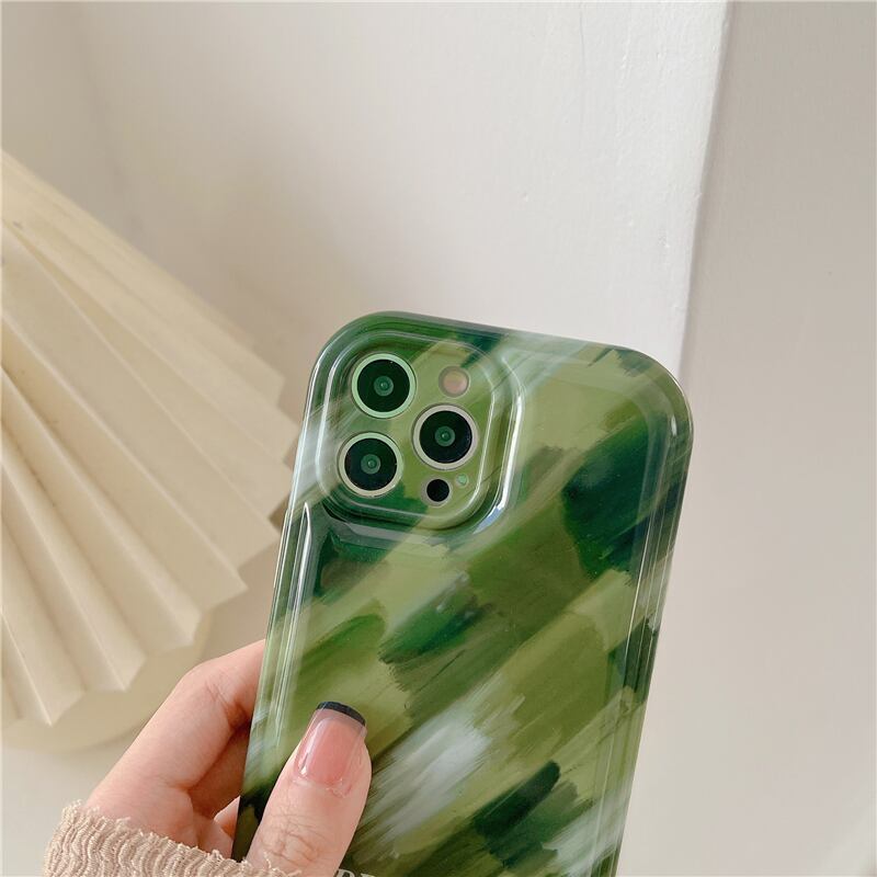 デザイン 夢のような景色をあなたのスマホに!このグリーンのシンプルな油絵風iPhoneケースは、大人可愛いデザインにロゴがあしらわれています。可愛いデザインであなたのスマホをおしゃれに彩りましょう!普段使いから特別な日まで、あなたのスマホを