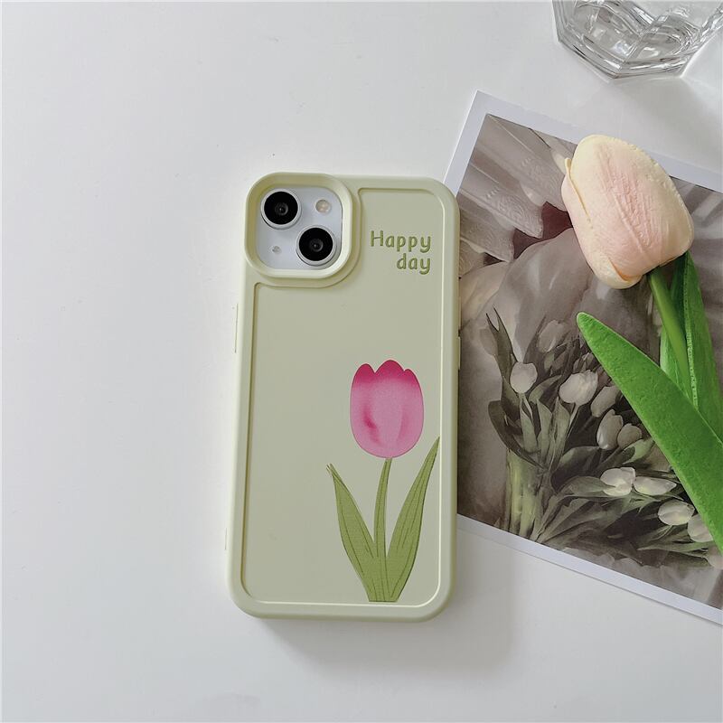 チューリップが素敵に咲き乱れる、happy day ロゴ入りのスマホケース。シンプルで大人可愛いデザインなので、きれいめなスタイルを演出してくれます。おしゃれなスマホケースで、あなたのスマホを可愛く仕上げて下さい!