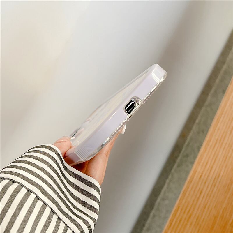 リボンiPhoneケース NICEハート:可愛い大人可愛いスタイルを演出!ガーリーなパープルのリボンとハートが、フローラルなお花が可愛いクリアケースで韓国っぽいスマートなファッションを演出!あなたのスマホを可愛らしく、大人可愛く仕上げまし