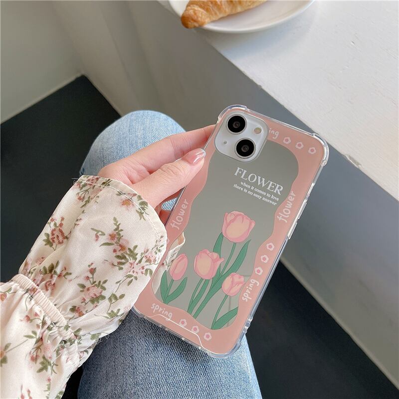 チューリップの花柄が大人フェミニンなiPhoneケース!ミラー付きで、ガーリーな韓国ファッションを楽しめます。スマホケースなら、このユニークなデザインで毎日を彩りましょう!