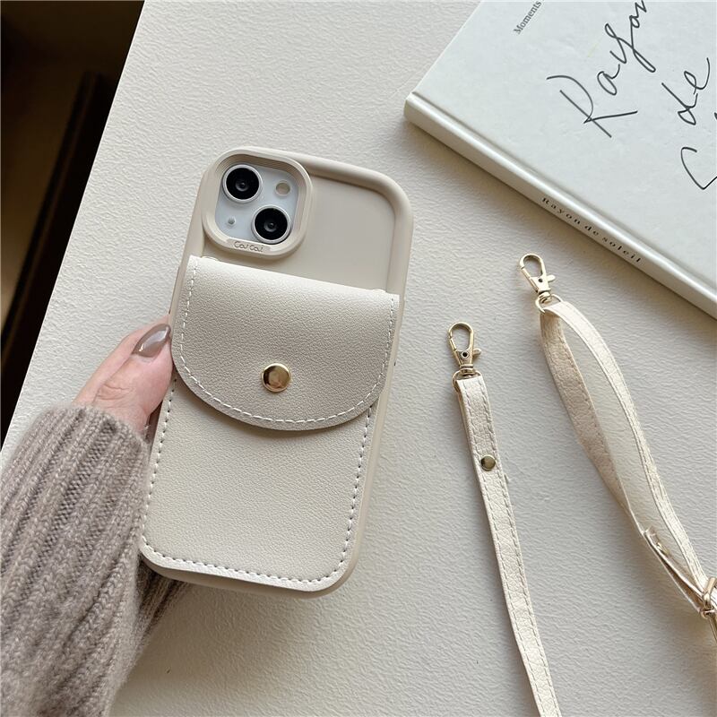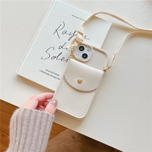 【送料無料】 iPhoneケース ホワイト ショルダー l カードケース 落下防止 シリコン クール シンプル 大人女子 スマホケース 韓国
