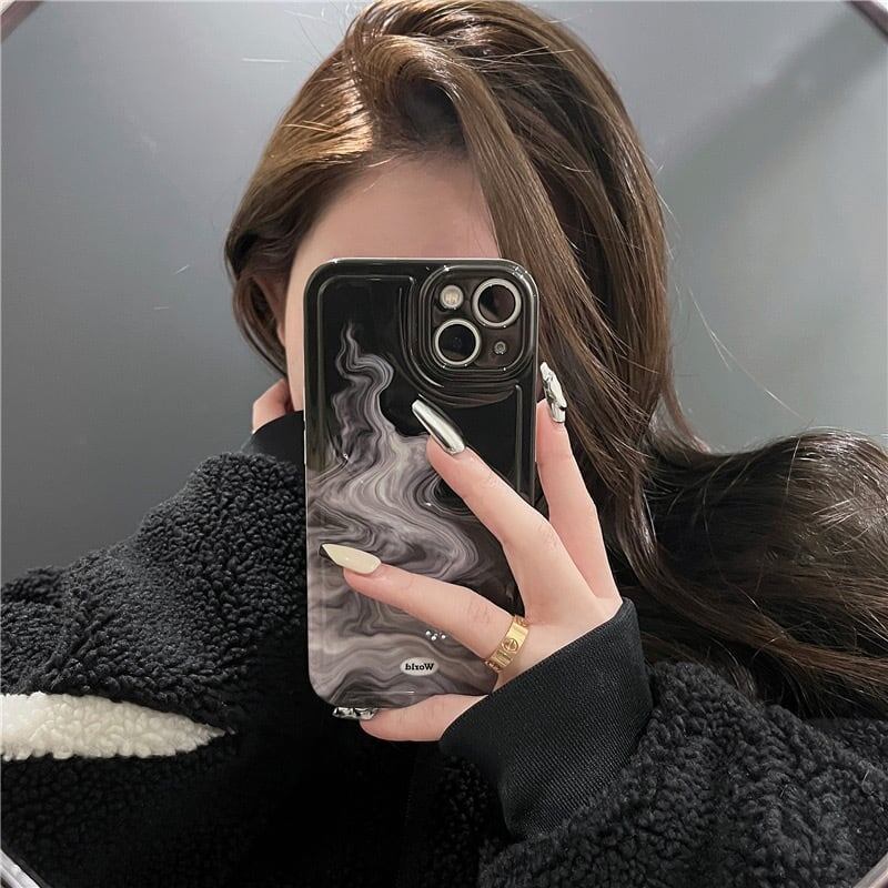 【洗練されたスモーク模様のiPhoneケース】黒と白のインク煙模様が、シンプルでクールなデザインで、あなたのスマホを韓国風に仕上げます!シックな印象でスタイリッシュなスマホケースを探しているなら、このiPhoneケースを見逃すことはできません!