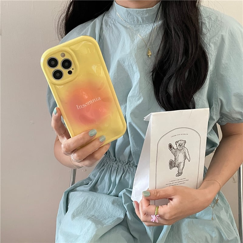 【送料無料】 iPhoneケース イエロー オレンジ l 黄色 暖色 英語 英字 Insomnia 韓国 シンプル カジュアル スマホケース 凹凸 立体
