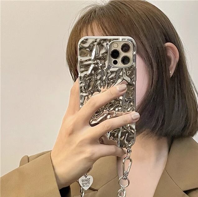 モダンでモード感あふれるスマホケース!チェーン付きで個性的なデザインが魅力的なiPhoneケースだよ!韓国ファッションを取り入れたシェルで、素敵なコーディネートを完成させよう!
