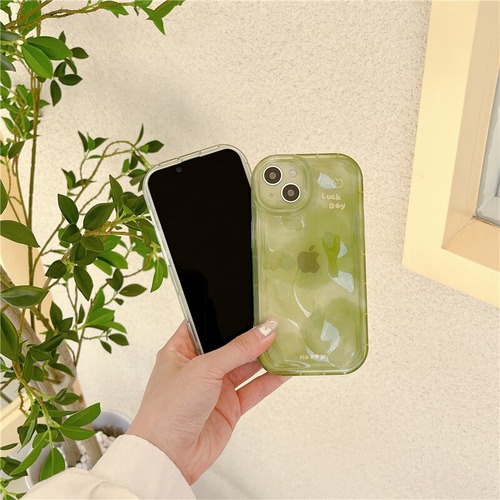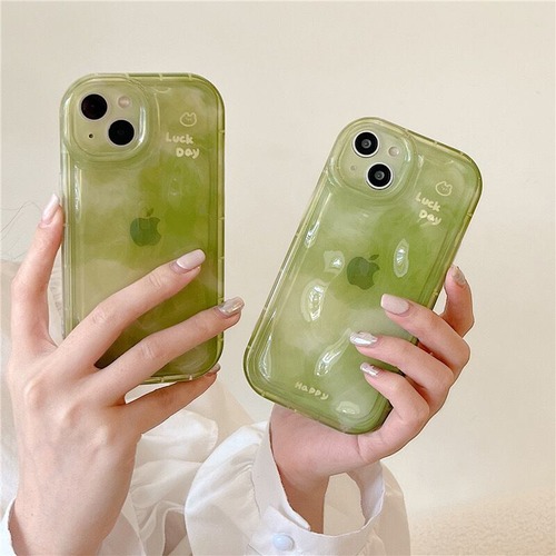 【送料無料】 iPhoneケース グリーン 緑 l グラデーション 半透明 模様 英語 大人っぽい 韓国 スマホケース クリアケース カジュアル シンプル