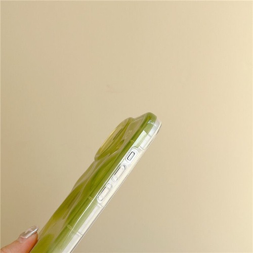 英語のグラデーション模様が大人っぽい、グリーンの緑色と抹茶色がクリアな半透明のiPhoneケース。韓国のスタイルを取り入れた、カジュアルでシンプルなデザインが特徴です。