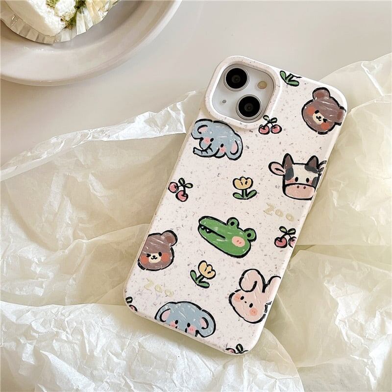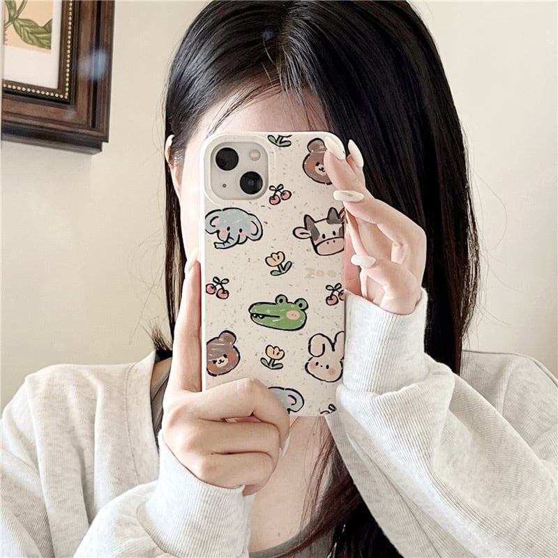 【送料無料】 iPhoneケース 動物 アニマル l かわいい キュート ゆるキャラ イラスト 韓国 スマホケース カジュアル クマ ゾウ 牛 うさぎ ワニ 花