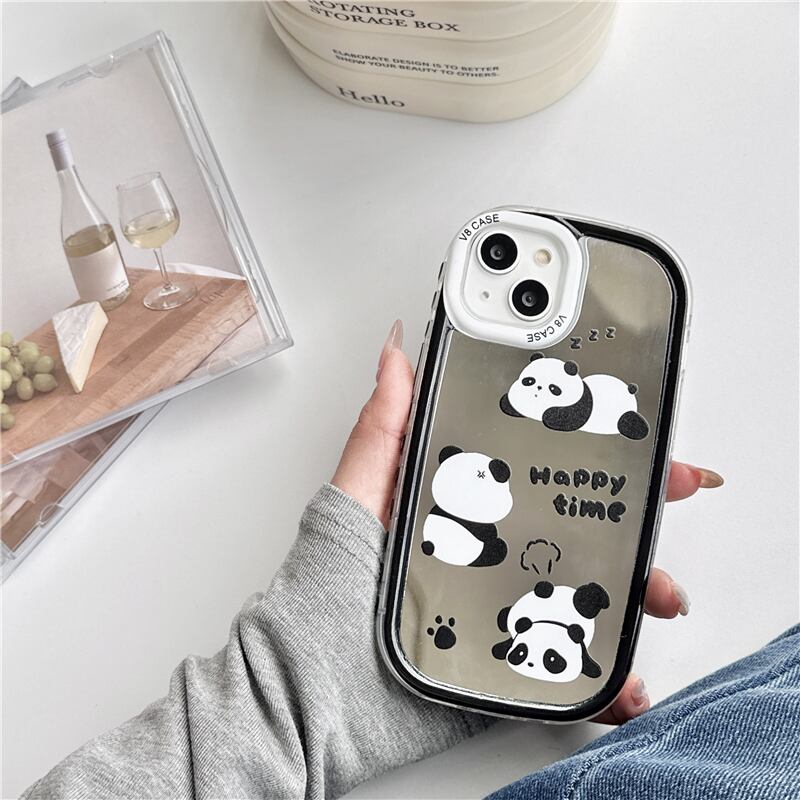かわいくてラブリーなiPhoneケース!パンダのデザインで、白黒のミラー付きで、韓国のキュートなスマホケース!毎日のスマホを、さらに可愛く演出しよう!