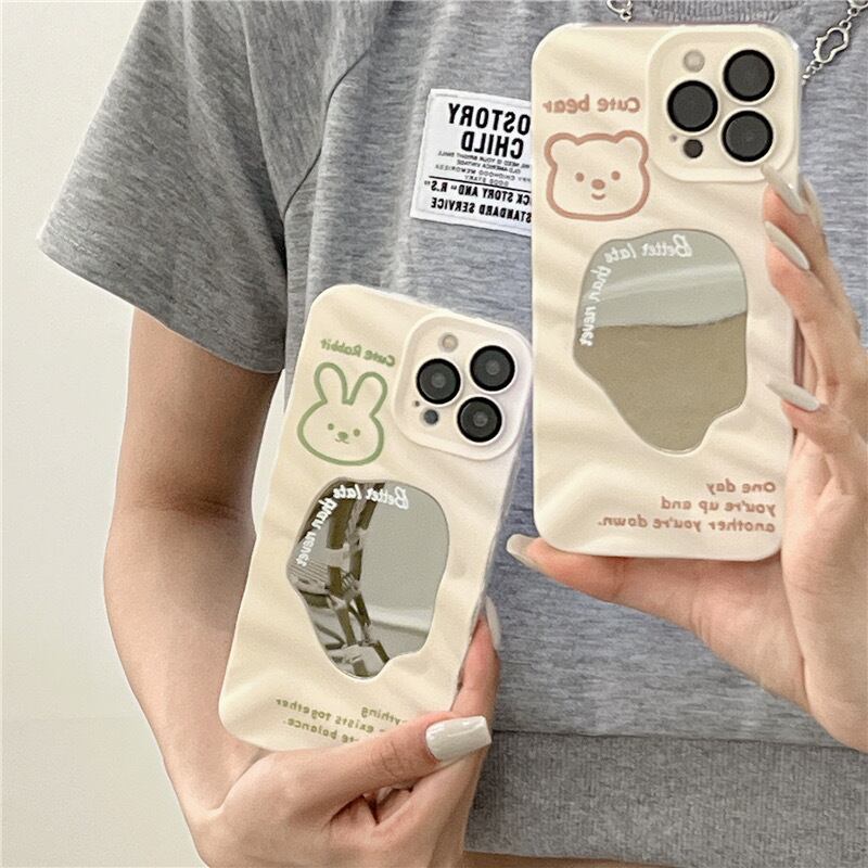 【送料無料】 iPhoneケース ミラー 鏡 l クマ うさぎ 動物 アニマル 英語 英文 アイボリー かわいい キュート おしゃれ カジュアル 韓国 スマホケース