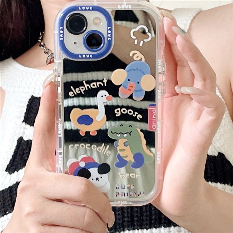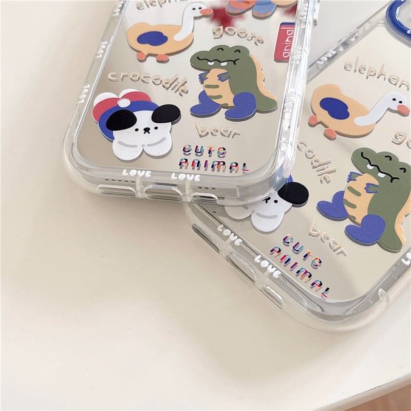 今年最も可愛いスマホケース!ワニゾウクマガチョウなど、かわいい動物のイラストがミラー仕様でプリントされた韓国のiPhoneケース。かわいいゆるキャラも描かれたキュートなデザインで、今年一番可愛いスマホケースを手に入れよう!